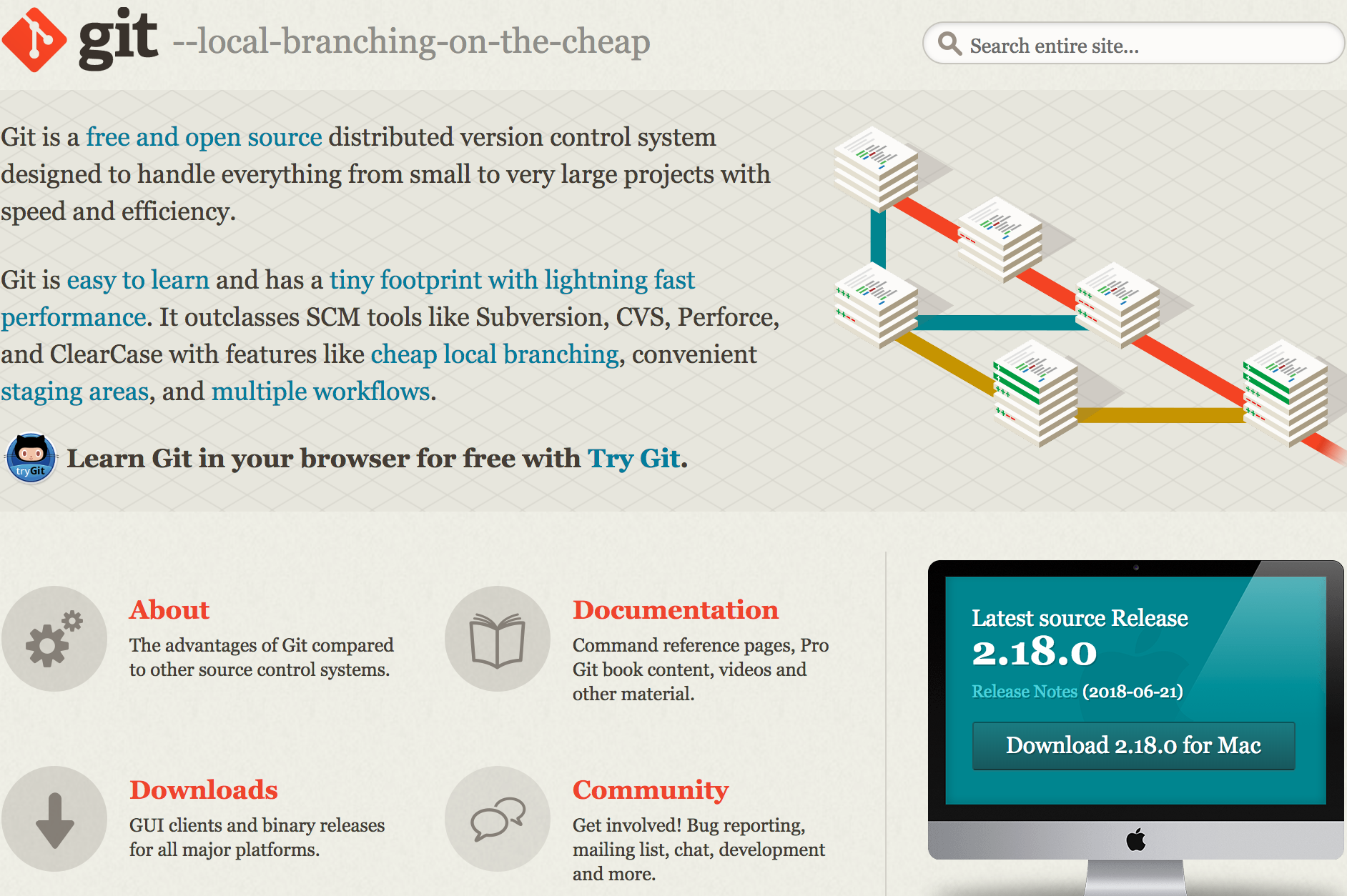 So if you have an older version or you don’t have it installed then just go to the website: git-scm.com.