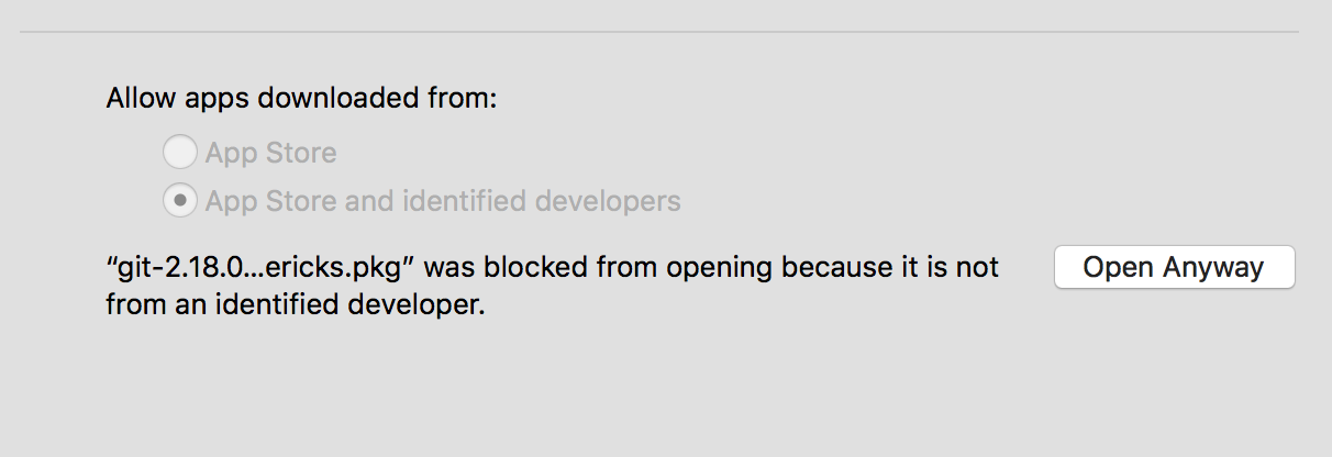 Now under general there will be a message that says this package was blocked from opening because it’s not from an unidentified developer.