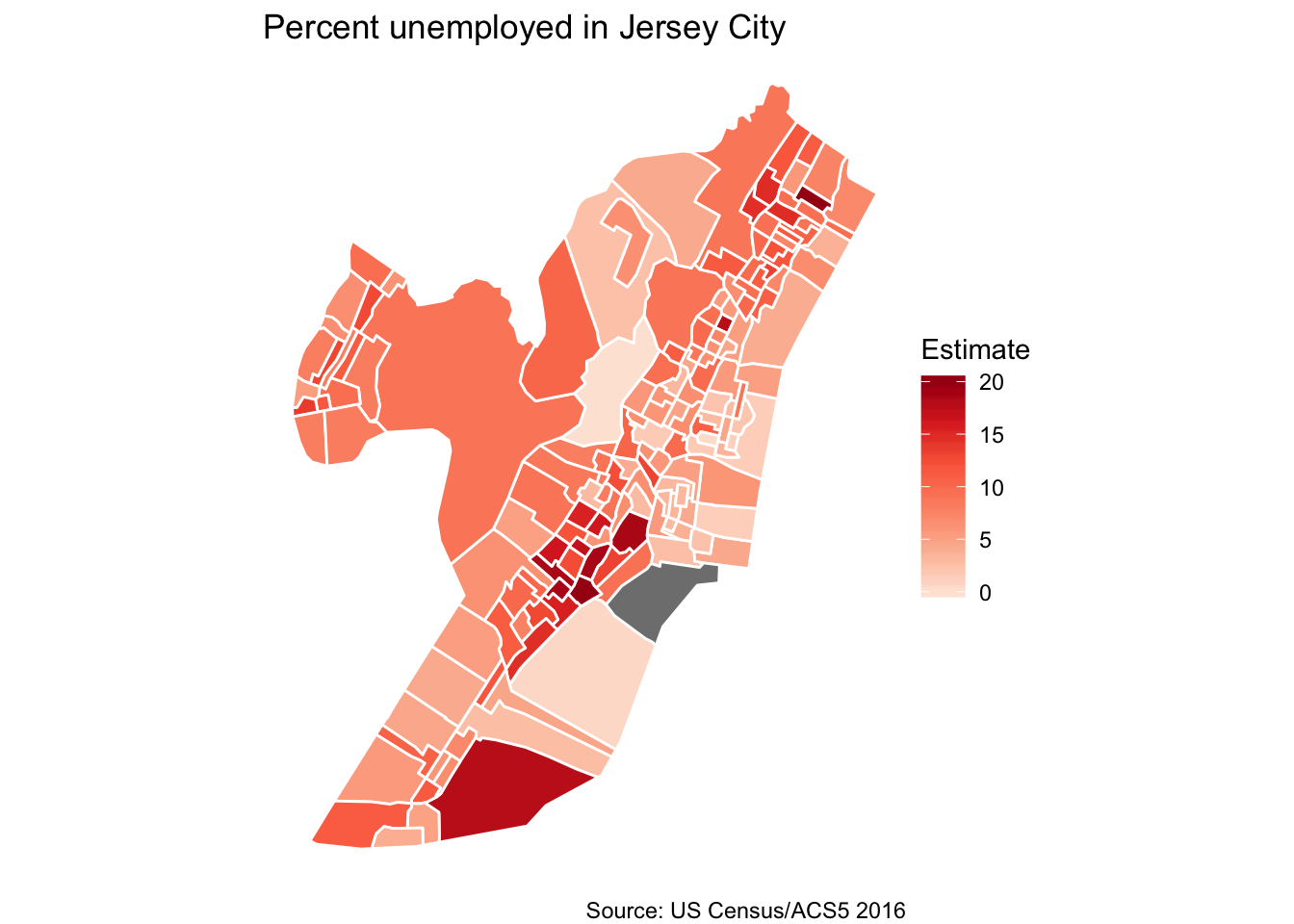 labs(title="Percent unemployed in Jersey City", caption="Source: US Census/ACS5 2016") +